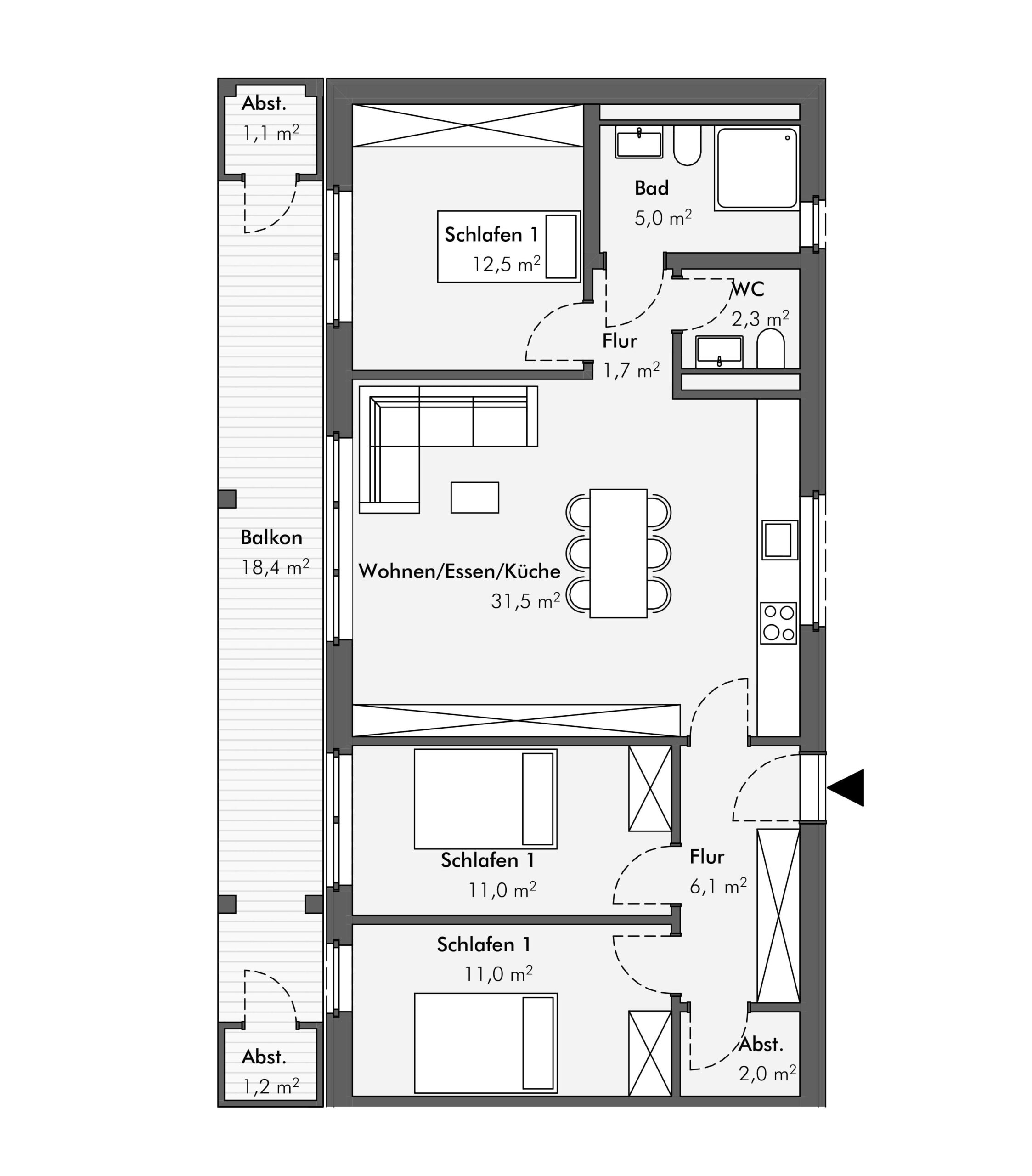 Für die Kleinhäuser stehen drei verschiedene Haustypen zur Wahl (Typ 25, 60, 80). Die Grundrisse der Haustypen sind bereits final zwischen Baugruppe und Architekten abgestimmt.